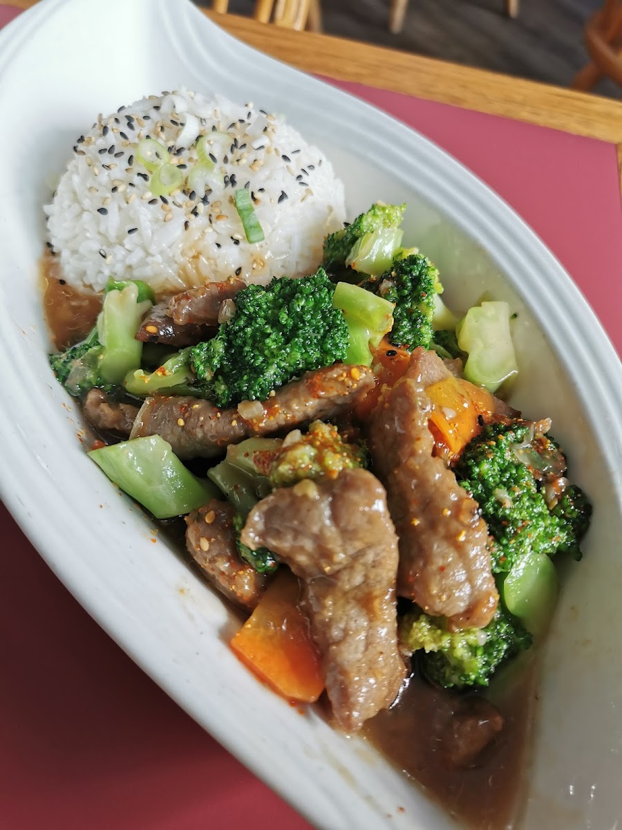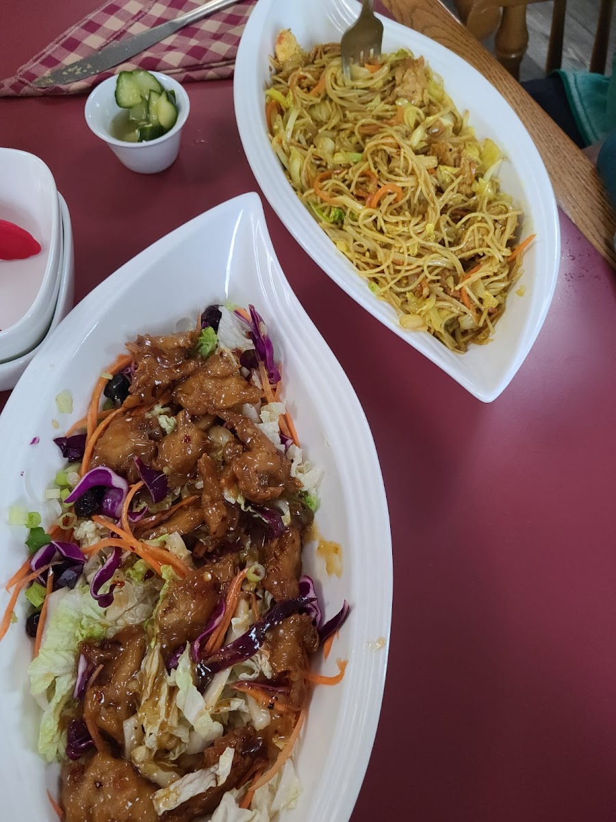 Great food at this little restaurant. We had the beef and broccoli dish with rice, and sweet and sour chicken dish with noodles. YUM! . The spring rolls were delicious! Lives up to is name...Soo Good!