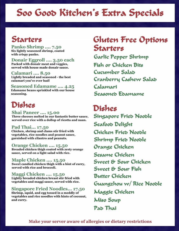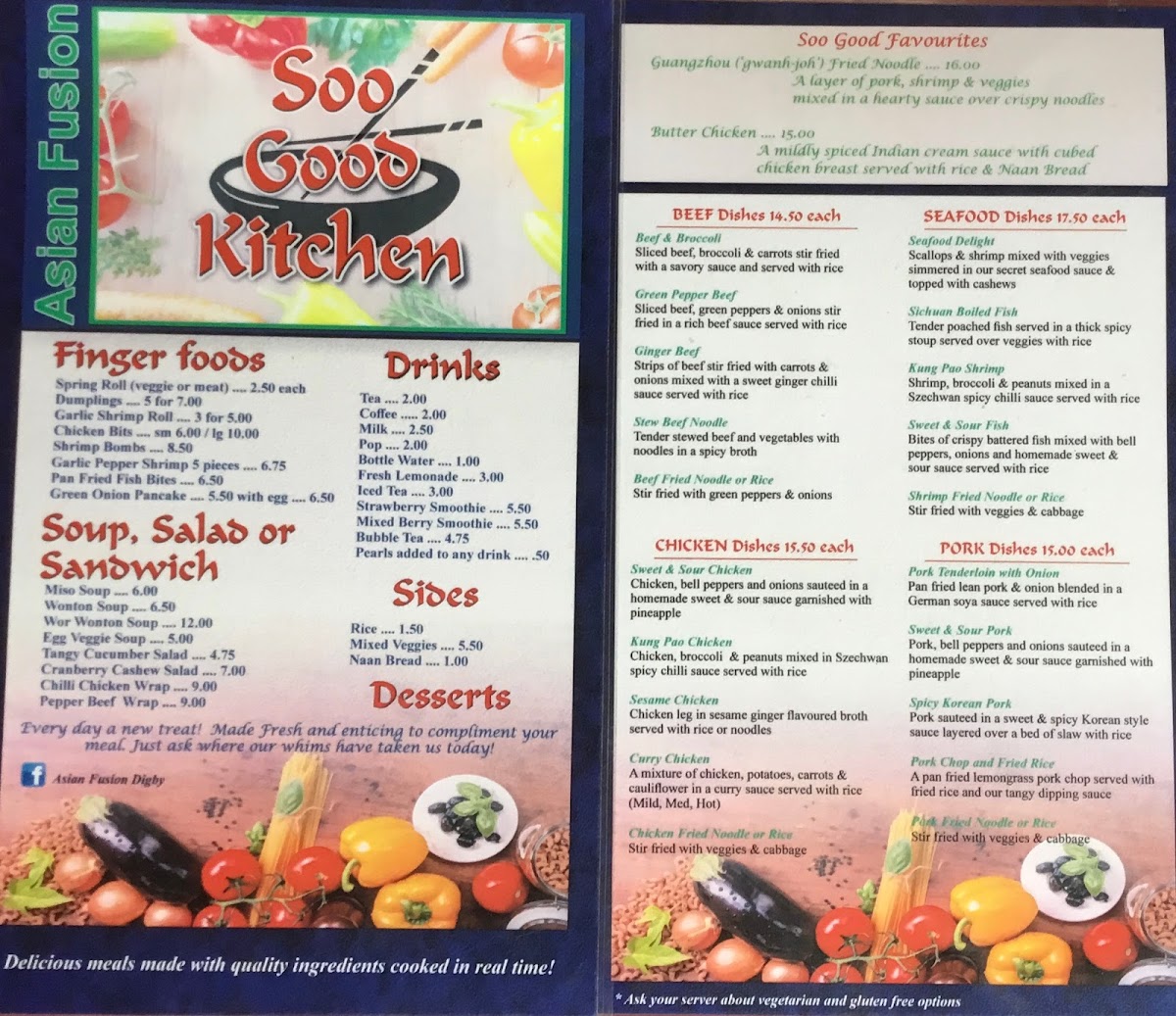 The menu at Soo Good Kitchen reflects a thoughtful Asian fusion approach, offering a mix of familiar comfort and subtle creativity. It’s the kind of selection that suits a casual meal, whether you’re stopping by for a relaxed lunch or settling in for a cozy dinner with friends or family.